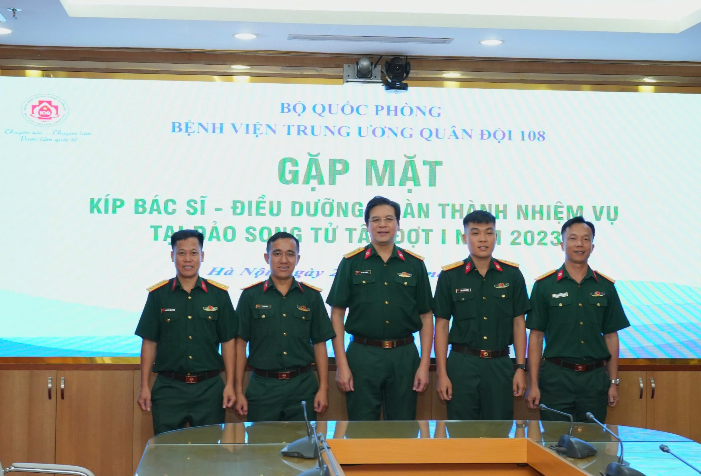 Đại tá PGS.TS Lê Văn Trường - Phó Giám đốc Hubet com cá cược thể thao chúc mừng kíp quân y hoàn thành nhiệm vụ