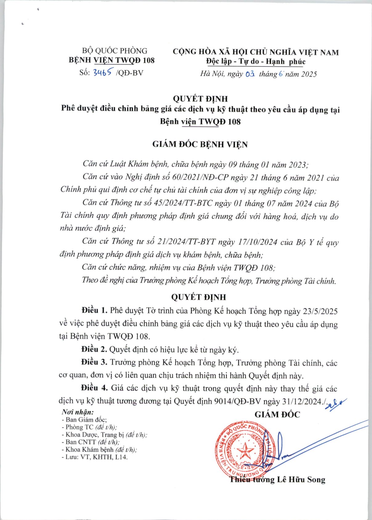 Quyết định ban hành bổ sung bảng giá dịch vụ kỹ thuật theo yêu cầu loại 2: Xem tại đây