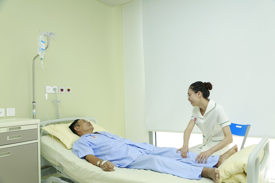 Bệnh nhân được nhân viên chăm sóc chân tay ngay tại giường bệnh