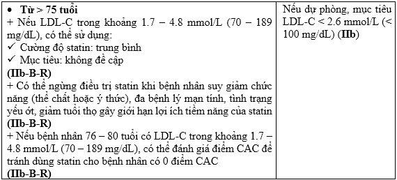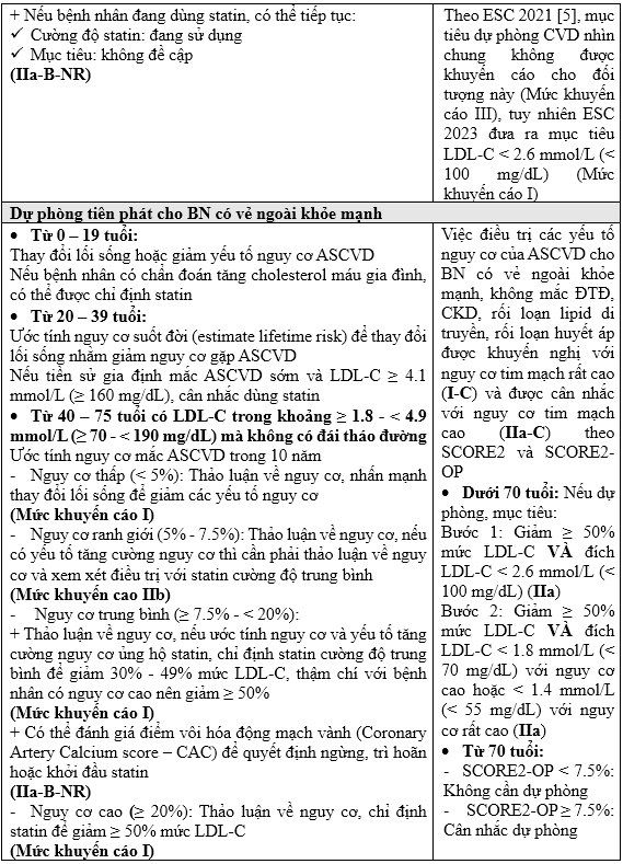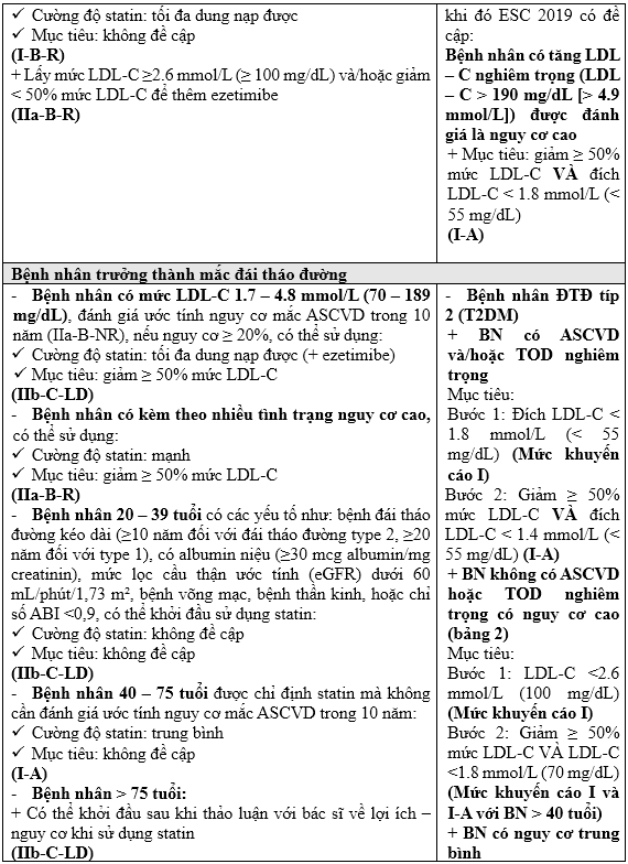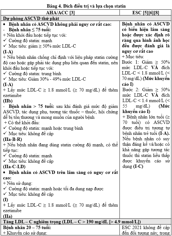 Sử dụng statin dưới đây được trình bày theo cách tiếp cận nhóm bệnh nhân cần quản lý theo AHA/ACC, bên cạnh đó có sự so sánh đích Hubet6677 phiên bản mới giữa AHA/ACC và ESC trong các nhóm bệnh nhân này.