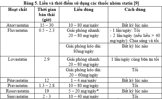 4.1. Liều và thời điểm dùng statin