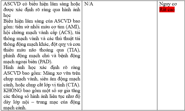 Bảng 1. Nguy cơ rất cao của ASCVD trong tương lai theo AHA/ACC [3]