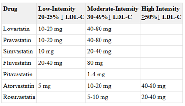 Bảng 4. Các mức cường độ của statin [1][3]