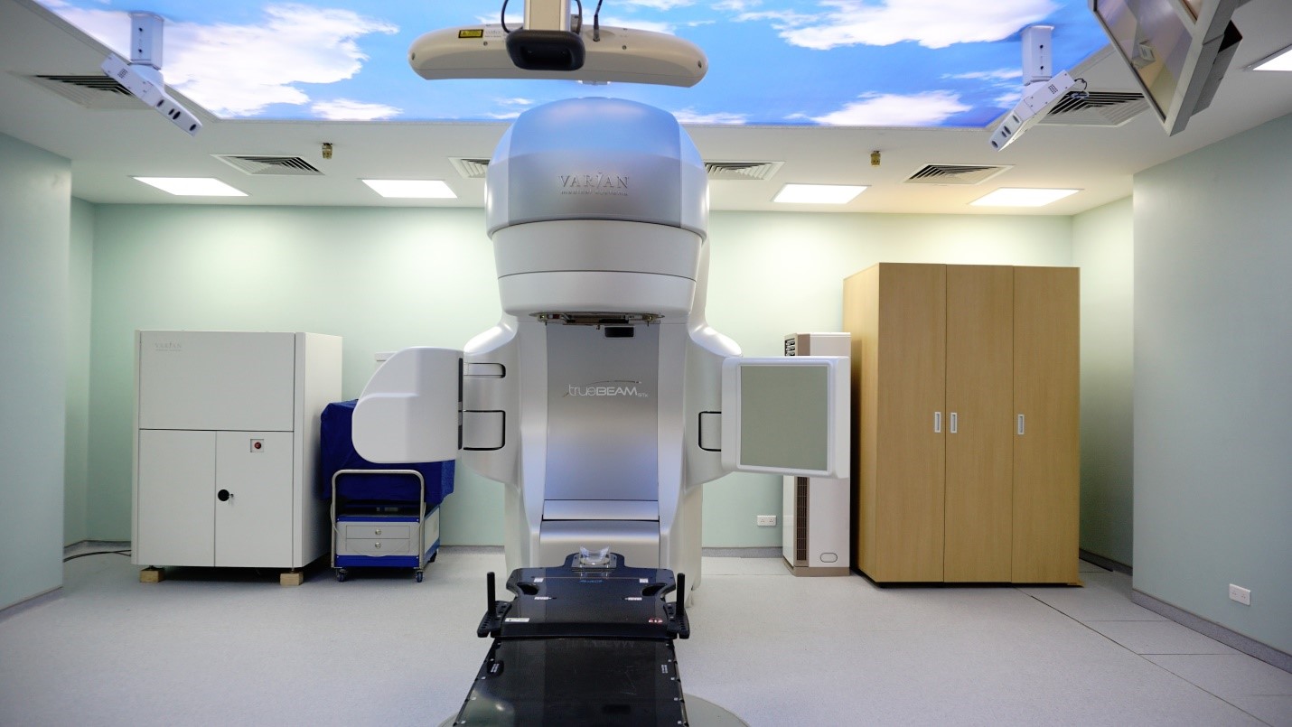 - Xạ trị dưới hướng dẫn hình ảnh thời gian thực (real-time IGRT) sử dụng hệ thống theo dõi bề mặt quang học (OSMS – Optical Surface Monitoring System).