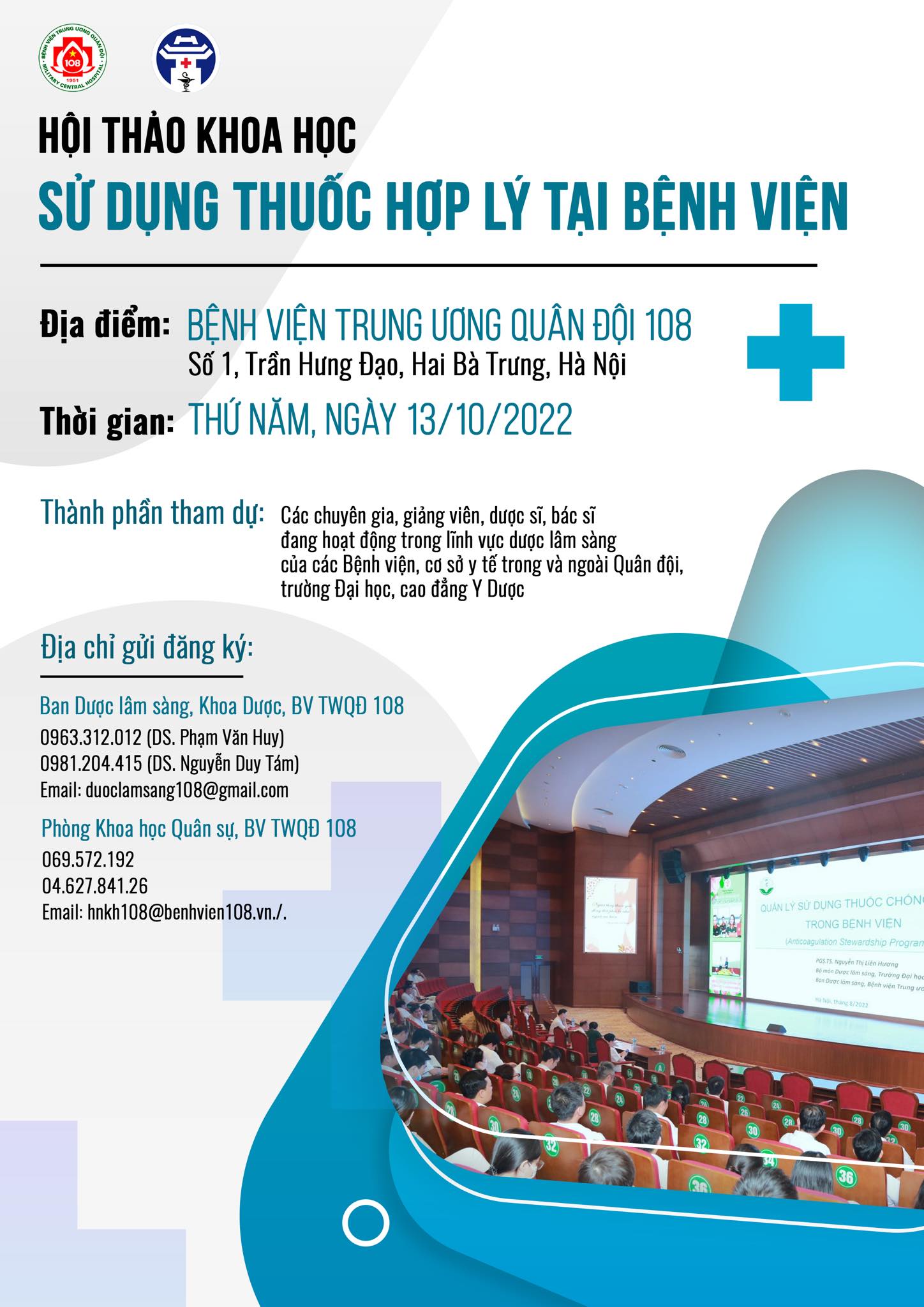 Chương trình Hội thảo khoa học "Sử dụng thuốc an toàn, hợp lý tại bệnh viện" được tổ chức vào thứ năm ngày 13/10/2022 tại Nhà cái cá cược cá độ uy tín, game bài, casino, thể thao, nổ hũ, bắn cá.