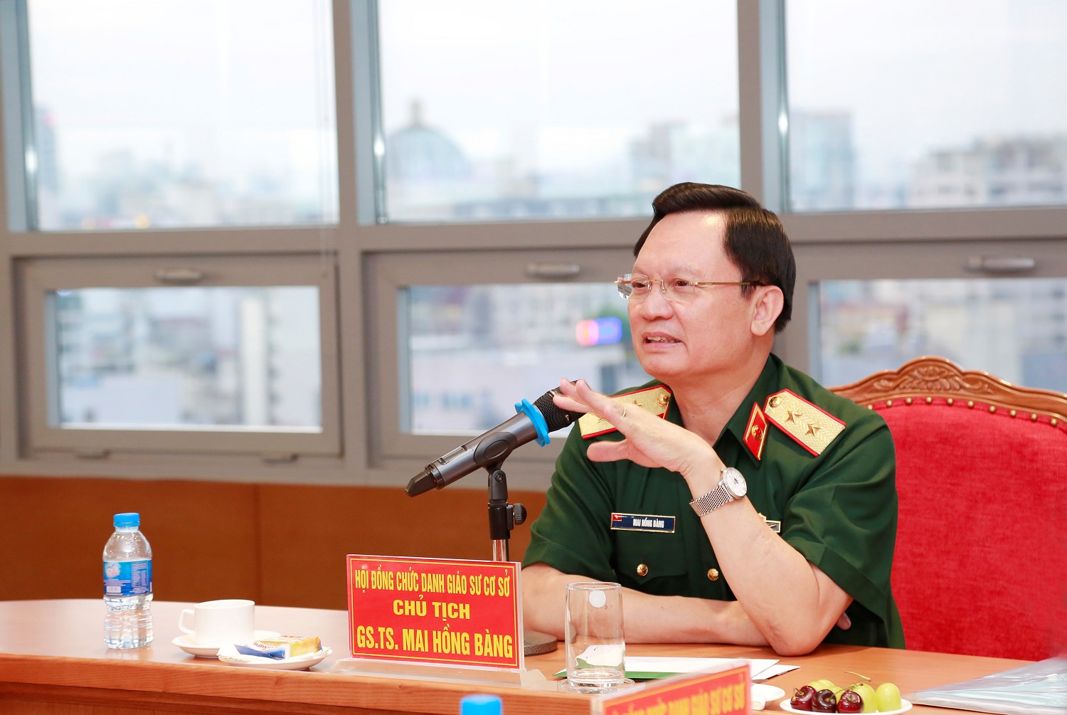 Trung tướng GS.TS. Mai Hồng Bàng – Chủ tịch Hội đồng Giáo sư cơ sở lần hai phát biểu tại buổi họp