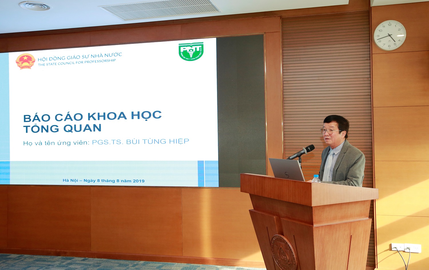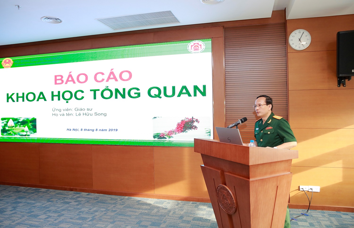 Các ứng viên đang báo cáo khoa học tổng quan trước Hội đồng