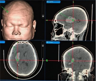 Bệnh nhân Trịnh Văn L, giới tính nam, 57 tuổi, tiền sử tăng huyết áp nhiều năm, Hubet6677 phiên bản mới không thường xuyên, nhập viện giờ thứ 29, trong tình trạng ý thức hôn mê (Glasgow 9 điểm), đồng tử 2 bên đều, liệt nửa người bên trái. Trên phim cắt lớp vi tính sọ não, hình ảnh xuất huyết não vùng đồi thị nhân xám trung ương bên phải, thể tích khối máu khoảng 45 ml. Bệnh nhân đã Hubet8888 lì xì hội viên mới chọc hút dẫn lưu ổ máu tụ dưới hướng dẫn của hệ thống định vị Navigation, định kỳ bơm thuốc tiêu sợi huyết Atylase, hút máu tụ qua dẫn lưu. Sau 2 ngày, tình trạng ý thức bệnh nhân tiến triển tốt, tỉnh táo, tiếp xúc tốt, Glasgow 14 điểm, không sốt, còn bại nhẹ nửa người bên trái. Trên phim cắt lớp vi tính chụp sau khi rút dẫn lưu, khối máu tụ giảm đi đáng kể, thể tích chỉ còn khoảng 10ml.