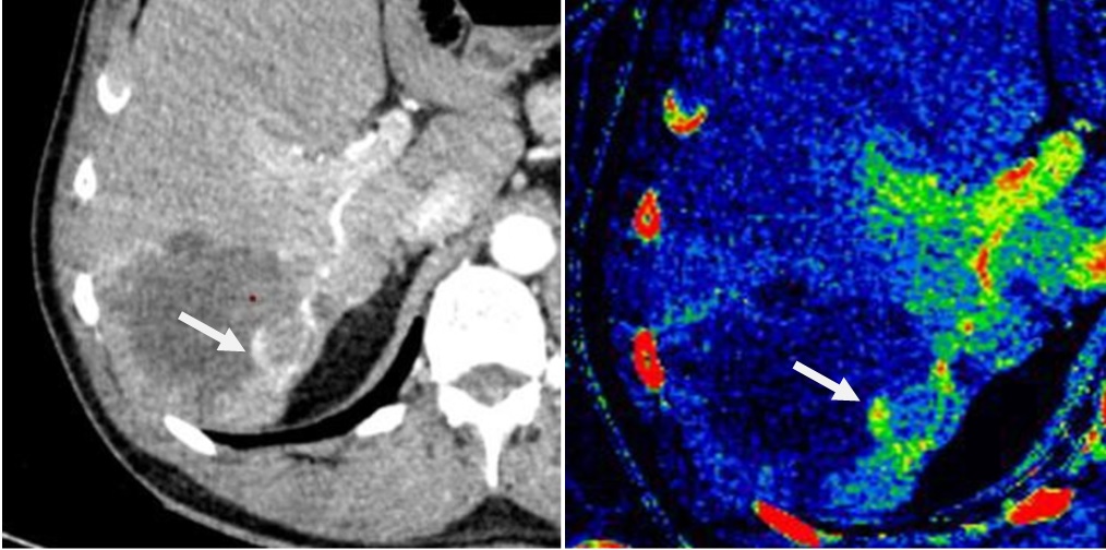 Hình 3. Hình ảnh chụp CLVT 512 dãy phổ theo dõi tổn thương mới sau Hubet6677 phiên bản mới đốt nhiệt cao tần tổn thương di căn gan