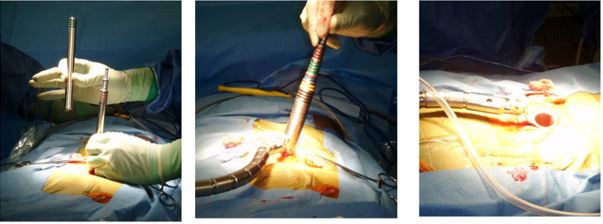 Hình 3. Phẫu thuật lấy đĩa đệm qua ống banh (quadrant).