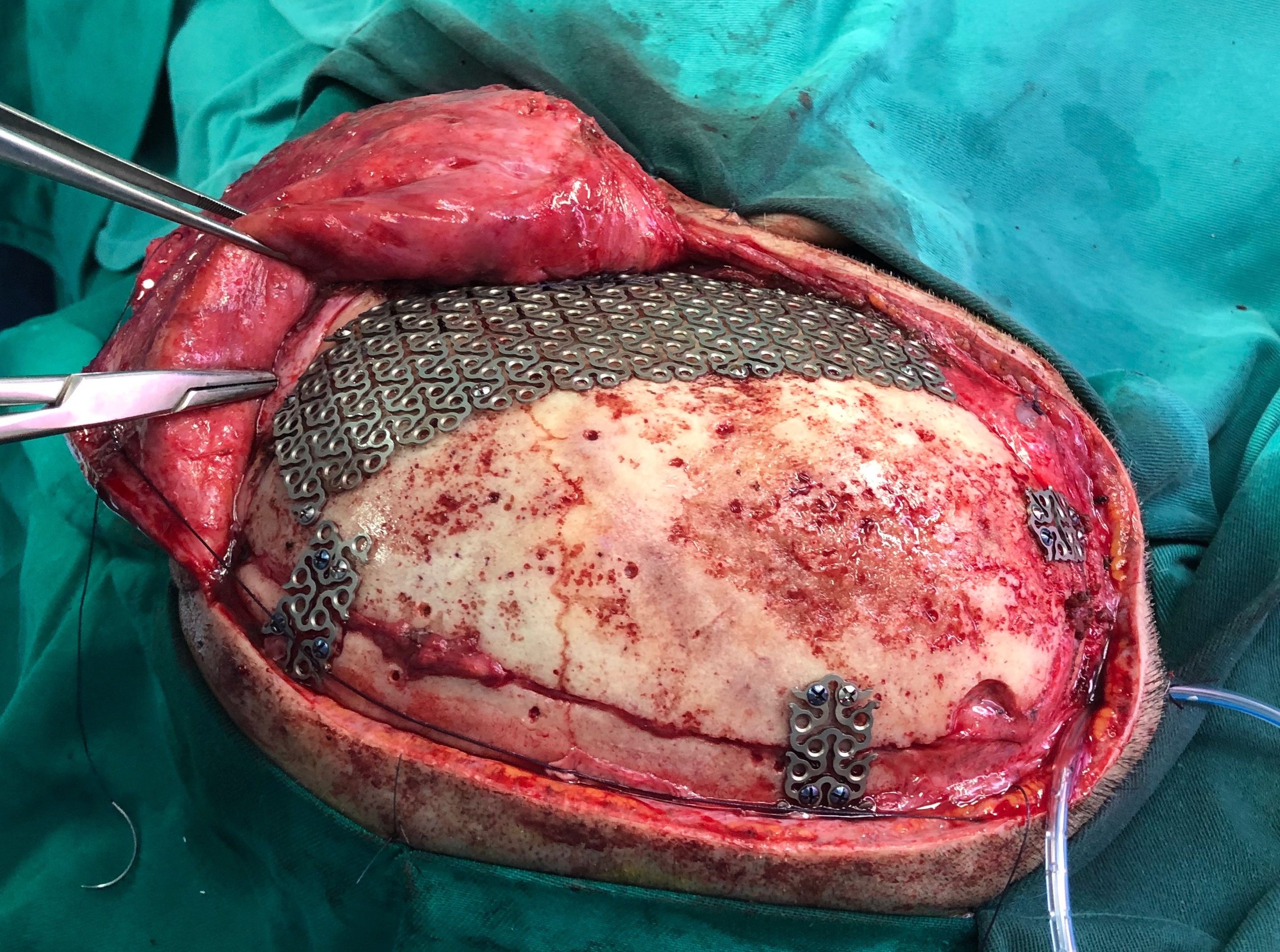Hình 2. Phẫu thuật ghép sọ tự thân (đặt lại bản sọ)