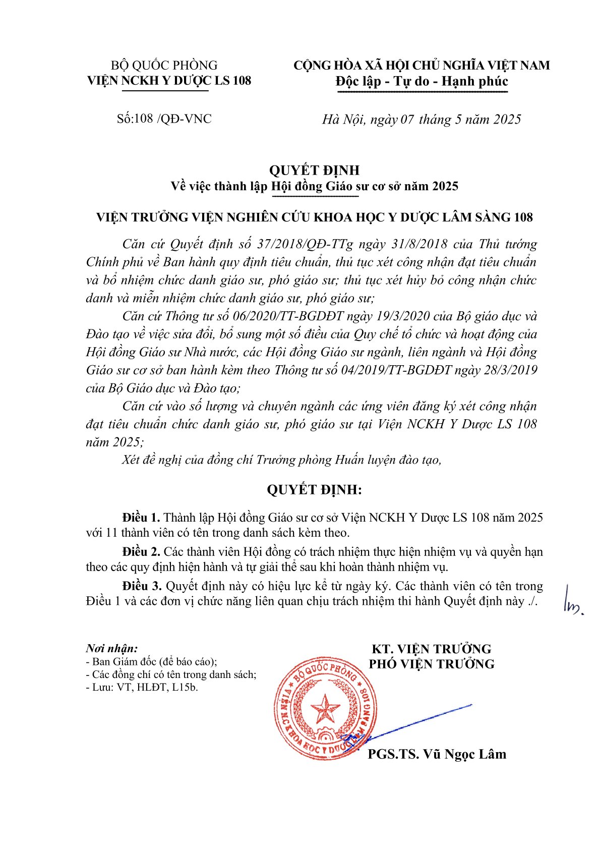 Quyết định về việc thành lập Hội đồng Giáo sư cơ sở năm 2025