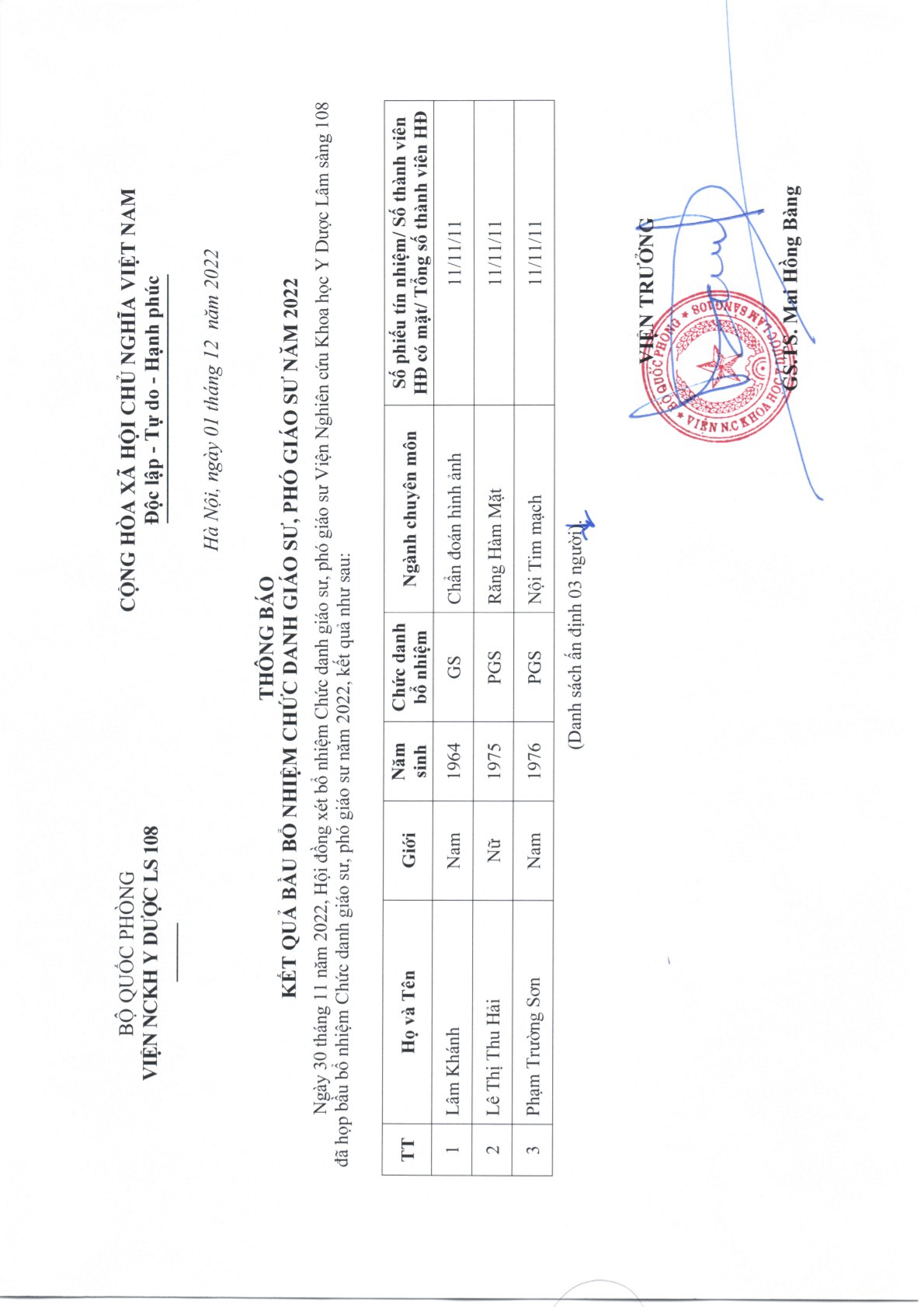 Thông báo: Kết quả bầu bổ nhiệm Chức danh giáo sư, phó giáo sư năm 2022