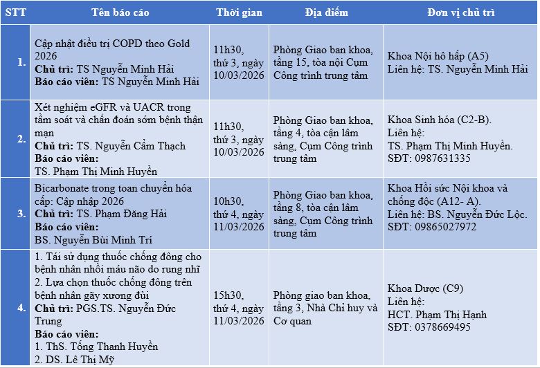 Theo thông báo số 984/BV-KHQS ngày 21/2/2024 của Hubet com cá cược thể thao, các đơn vị gửi thông tin lịch sinh hoạt khoa học trước 17h ngày thứ 6 hàng tuần theo mẫu form dưới đây