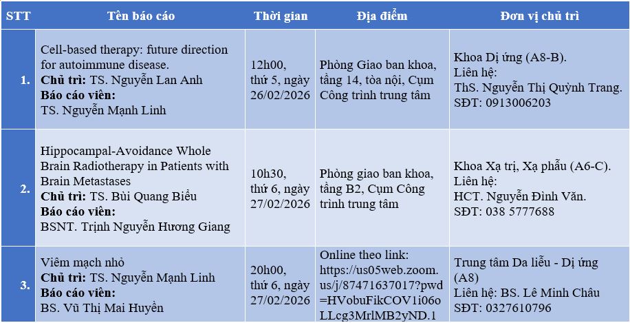 Theo thông báo số 984/BV-KHQS ngày 21/2/2024 của Hubet com cá cược thể thao, các đơn vị gửi thông tin lịch sinh hoạt khoa học trước 17h ngày thứ 6 hàng tuần theo mẫu form dưới đây