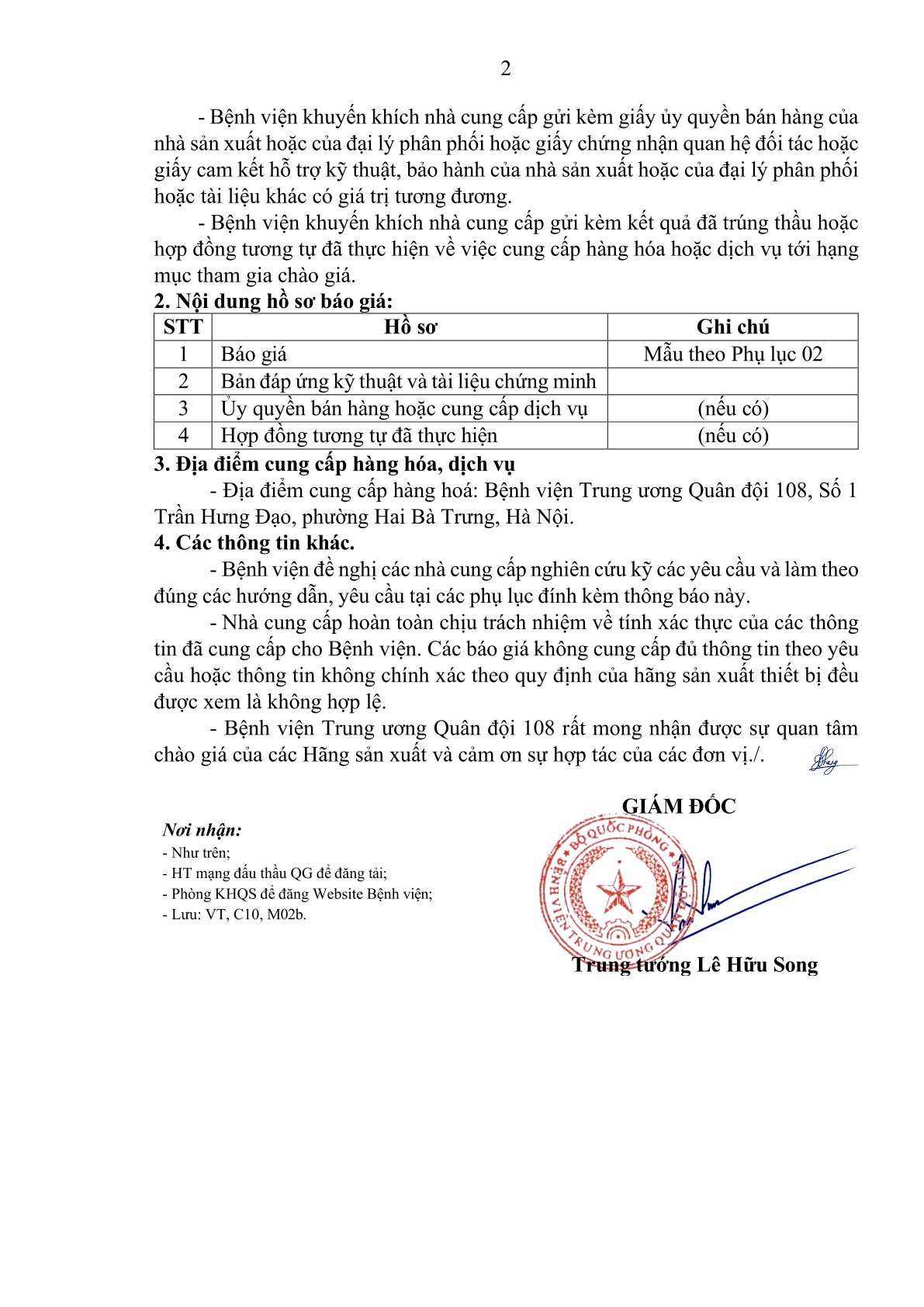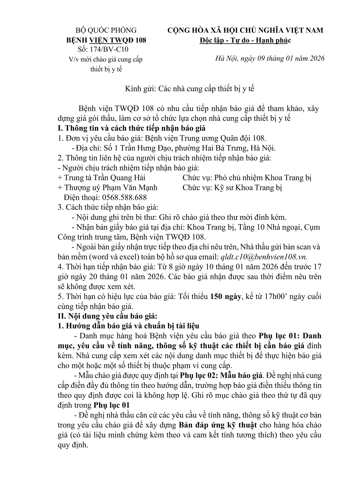 Thư mời báo giá số 174: Mời chào giá cung cấp thiết bị y tế