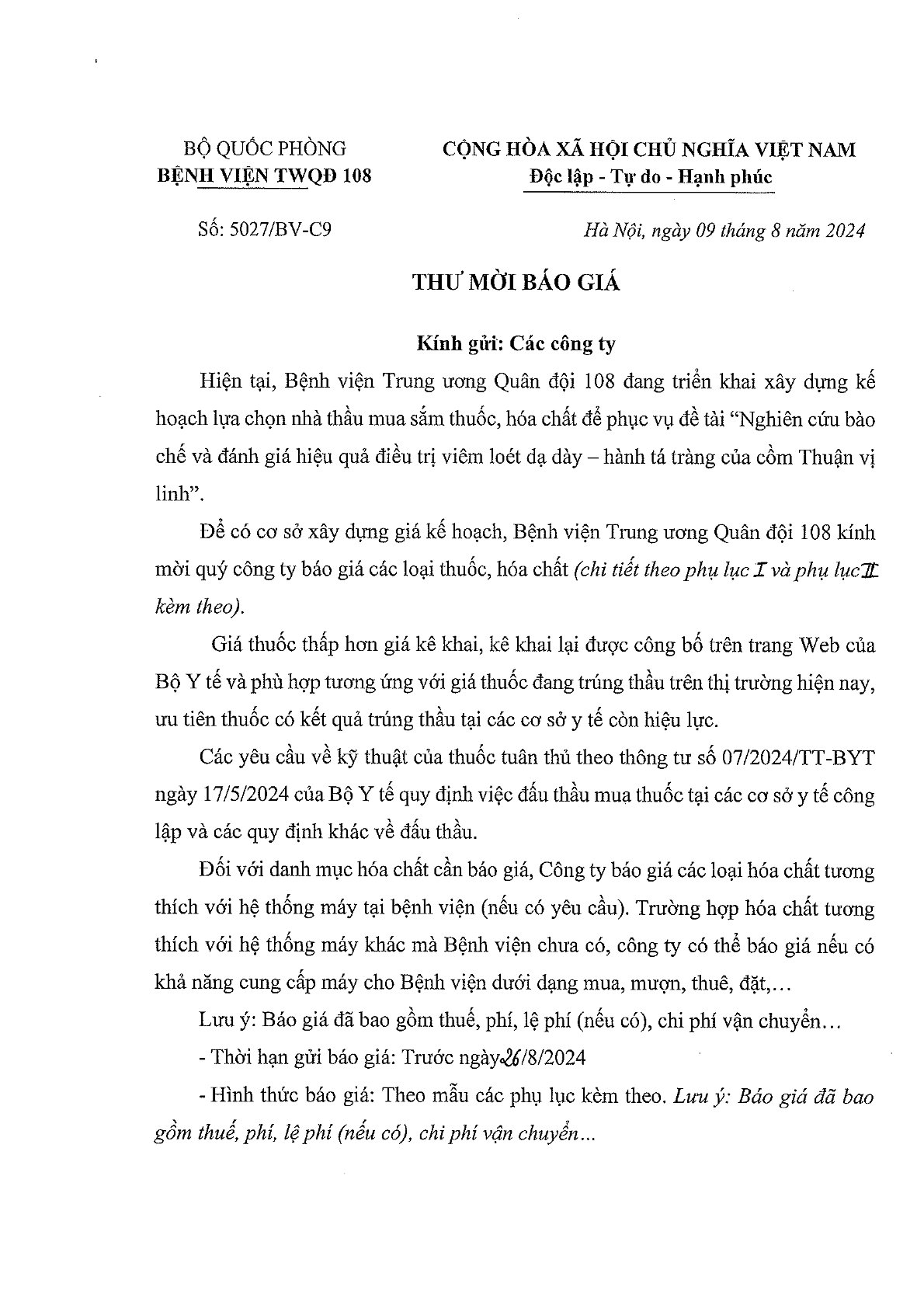 Kính mời các công ty gửi báo giá theo mẫu của Hubet com cá cược thể thao.