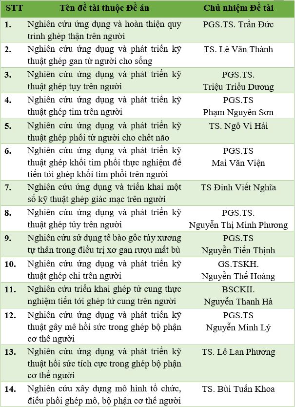 Danh sách 14 đề tài thuộc Đề án đã được thông qua Hội đồng khoa học cấp Bộ Quốc phòng xét duyệt như sau: