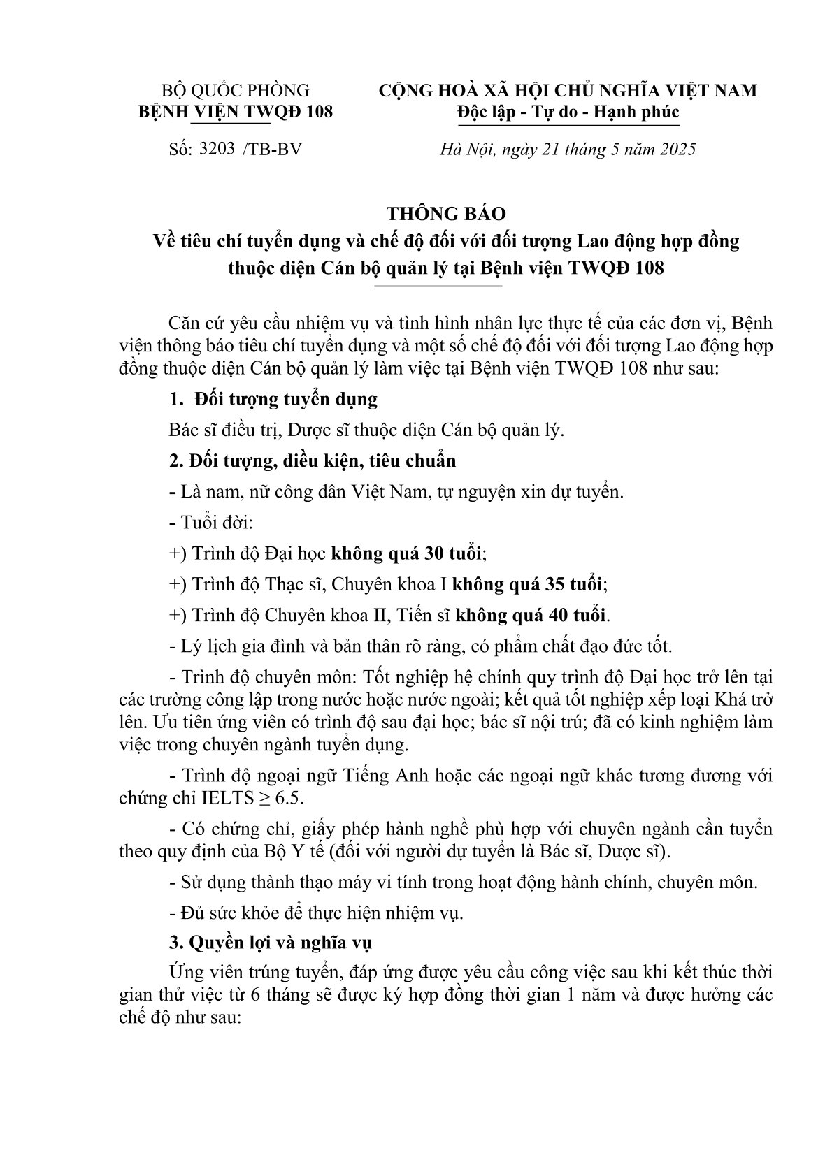 Thông báo tiêu chí tuyển dụng và chế độ đối với đối tượng LĐHĐ thuộc diện Cán bộ quản lý tại Nhà cái cá cược cá độ uy tín, game bài, casino, thể thao, nổ hũ, bắn cá